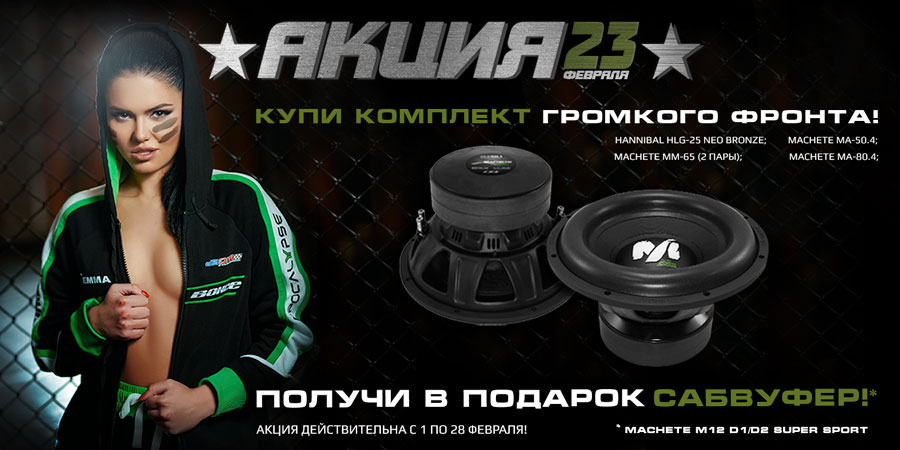 При покупке комплекта громкого фронта вы получаете Machete Super Sport M12 бонусом к вашему заказу