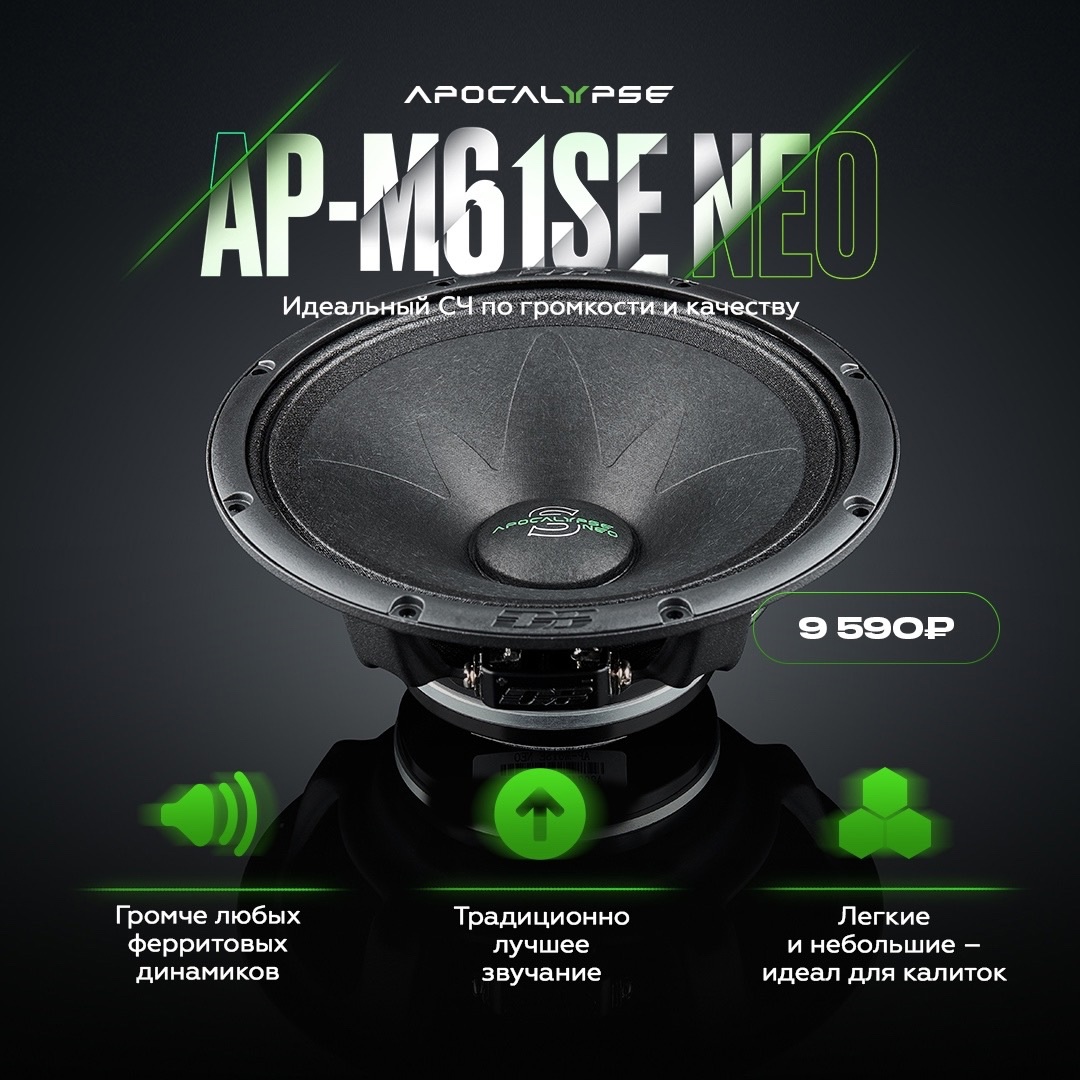 Но главное даже не сравнение с ферритовой версией: за счет неодимового мотора с высоким КПД, модель имеет высочайшую для своего бюджета чувствительность. Фактически, AP-M61SE NEO эффективней любого ферритового динамика.