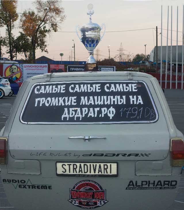 Совместно с командой Stradivari мы представили публике новый проект Audio Extreme. Дебютом проекта стало участие в соревнованиях dB Drag Racing в классе Экстрим, на системе, созданной на базе легендарного <<Броневика>> Stradivari и двух 15'' динамиков GR-15NEO. Дебют превзошел все наши ожидания - система Alphard Audio Extreme показала ошеломляющий результат 179.1дБ, ставший АБСОЛЮТНЫМ РЕКОРДОМ РОССИИ по звуковому давлению!!!