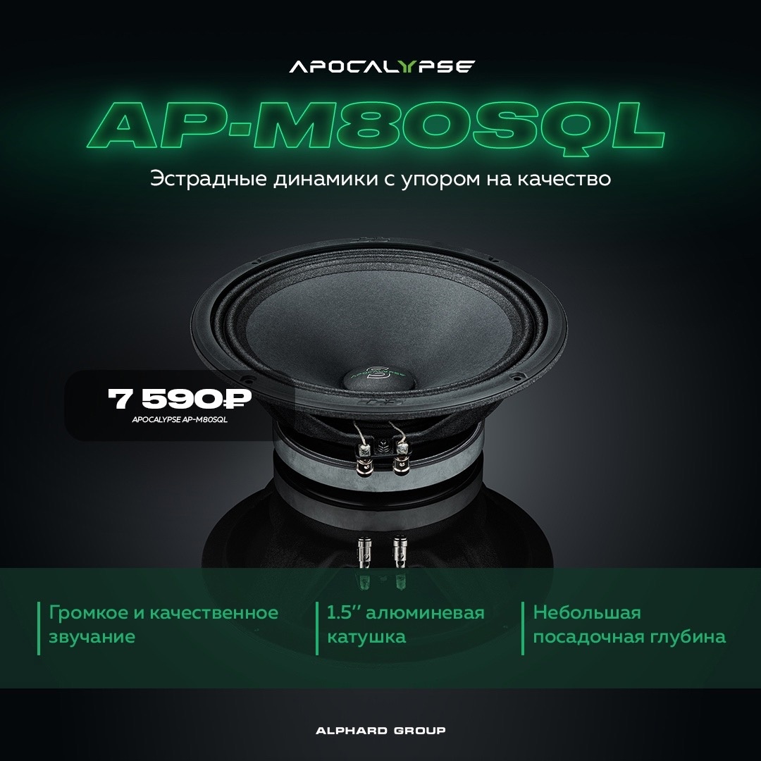 Новинка является логическим продолжением модели серии Apocalypse — AP-M60SQL. Тот же разноширокий двухволновой подвес, гибридный мотор, алюминиевая катушка, особая геометрия диффузора с различной степенью прессования по линии экспоненты — совокупность характеристик, необходимых для получения того звучания, которое вы цените в SQL-ях, выпускаемых без изменений с 2020 года!