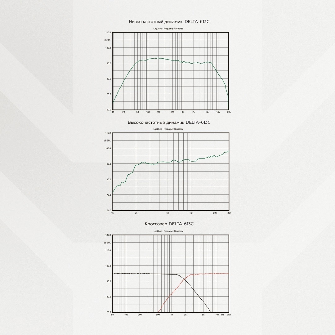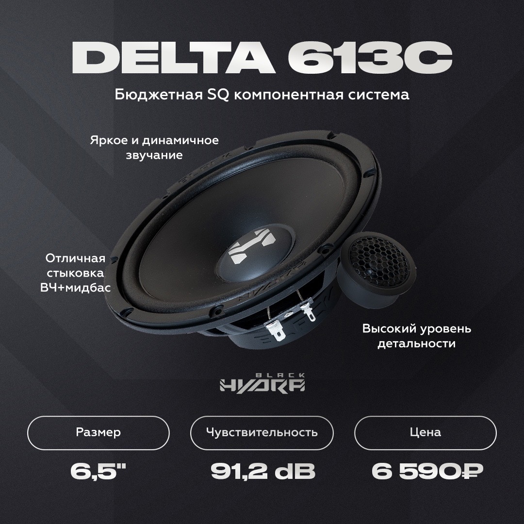 Плавную, мягкую стыковку мидбаса с твиттером компонентной акустики Delta 613C обеспечивает кроссовер, за счет чего она играет сбалансированно, без явных горбов и провалов. Коаксиальная акустика, как водится, отрегулирована за счет конденсатора.