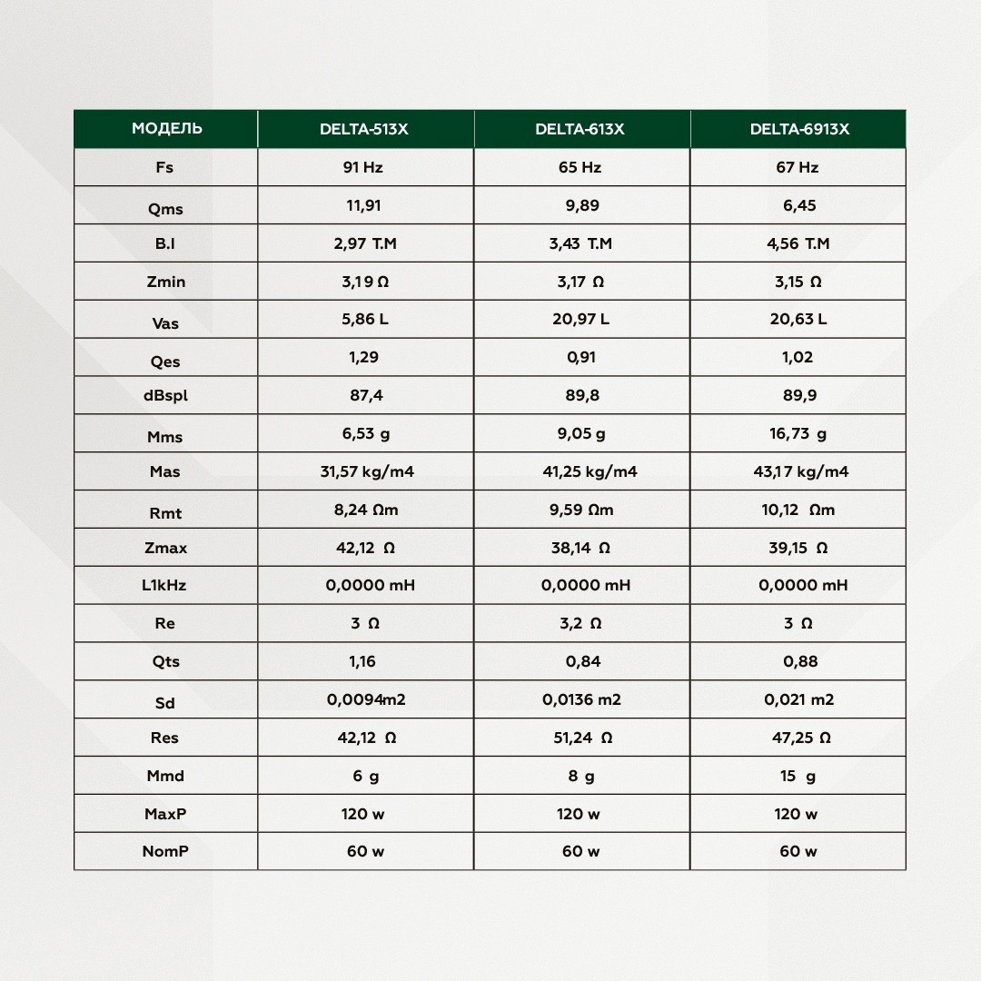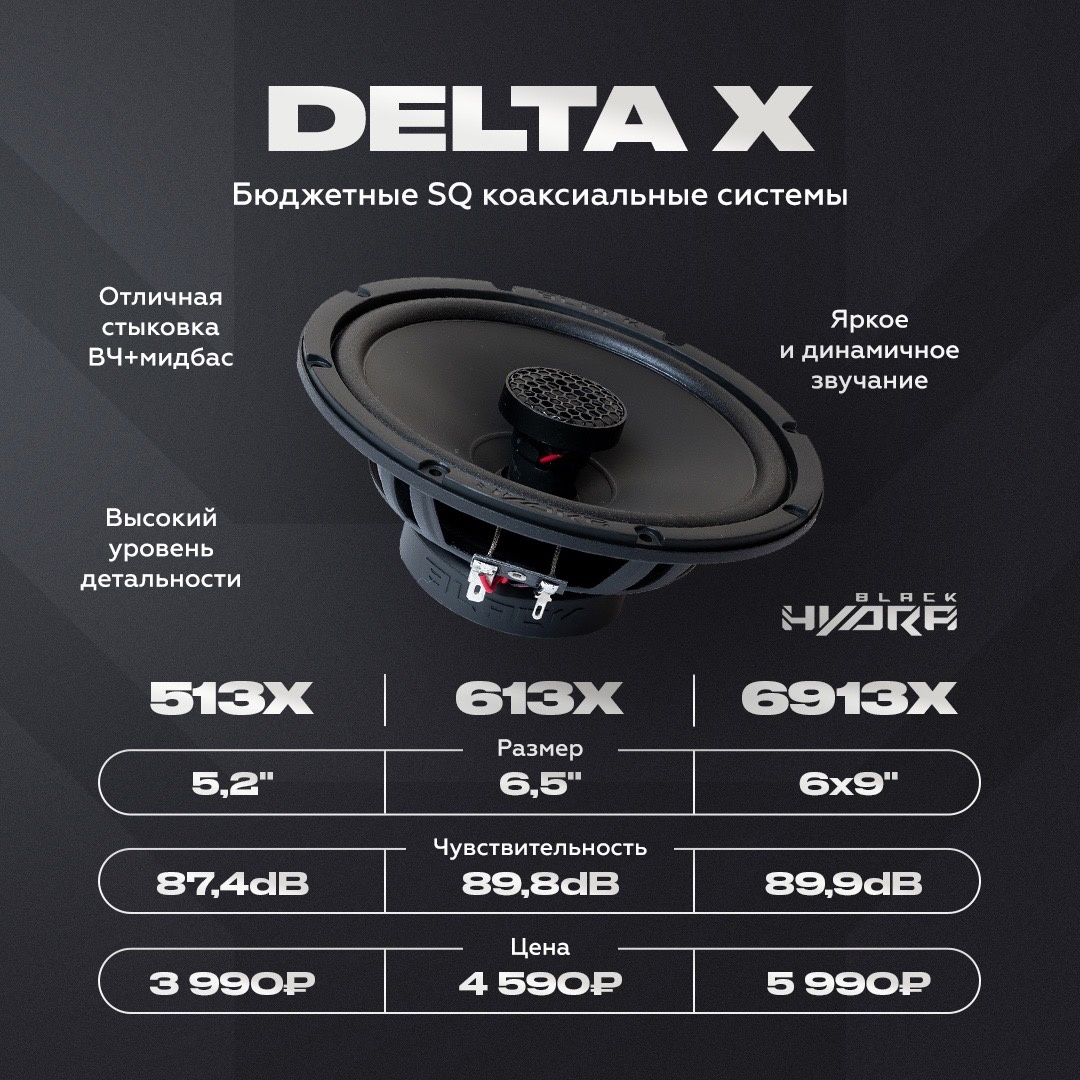 В линейке Delta будет 4 модели: уже упомянутая компонентная акустика Delta 613C, а также коаксиалы в стандартных типоразмерах 5.2, 6.5 и 6х9 дюймов.