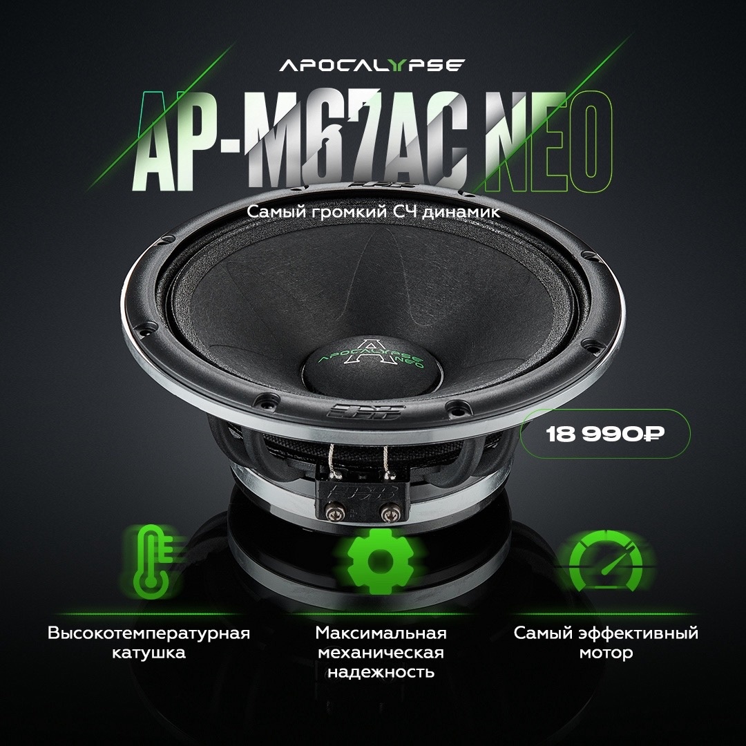 Мотор, используемый в производстве 67AC NEO, аналогичен 8-дюймовой версии динамика: самый результативный на рынке, КПД магнитной системы стал выше на 50%.