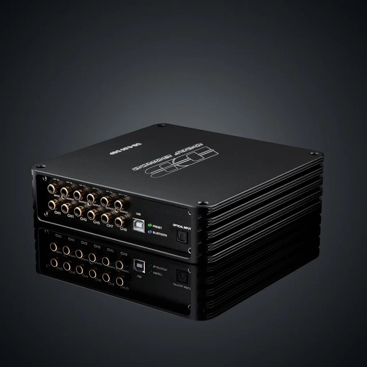 - 10 выходов RCA для сквозного подключения внешних усилителей; так, продукт можно использовать как процессор для управления и настройки громких систем;
