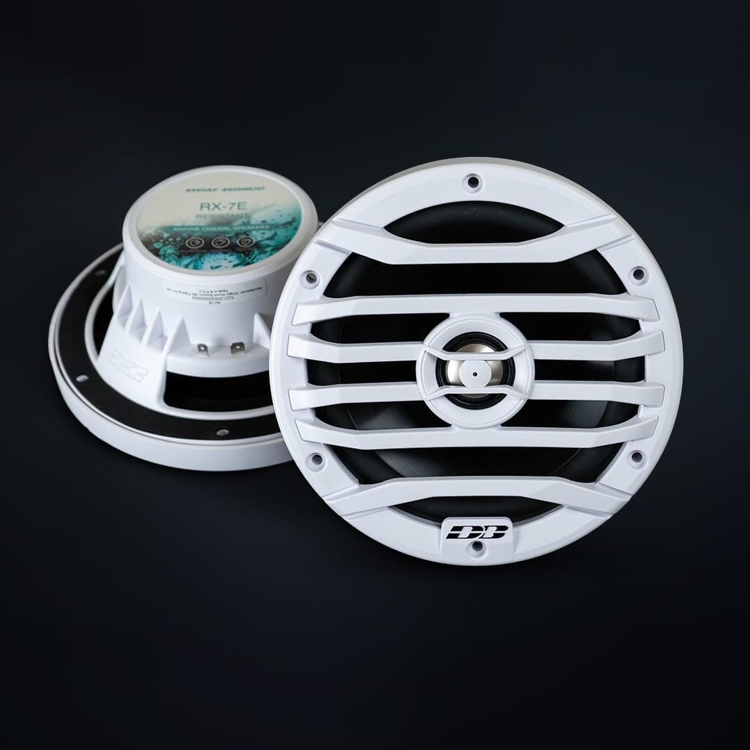 RX-7E — первая модель этой серии, коаксиальные динамики в типоразмере 7 дюймов, обладающие классом защиты от влаги IPx6, позволяющим без опасений использовать акустику даже в экстремальных условиях на воде.