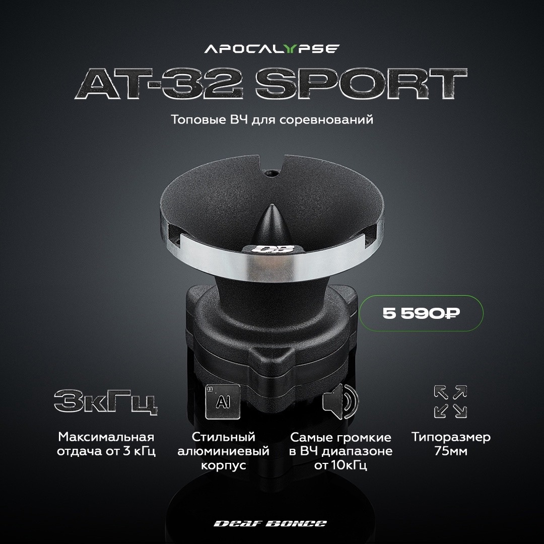 Так, AT-32 Sport, за счёт максимально ровной АЧХ, можно назвать более универсальным. Своей усреднённой “рабочей” чувствительности в 106-108 дБ динамик достигает уже на отметке в 3 кГц, и вплоть до 15 кГц отыгрывает без провалов и спадов, что делает его, пожалуй, лучшим на рынке решением для повседневных экстремально громких систем.