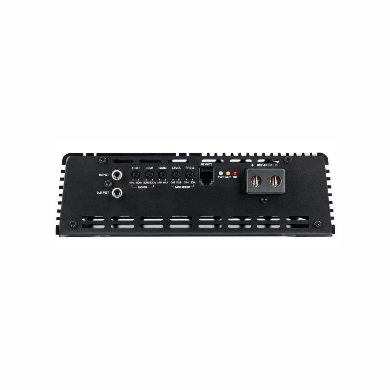 Вместе с моноблоком в комплекте идет выносной регулятор гейна. На нем есть индикатор работы усилителя и лампа клипа, которая подскажет, когда нужно понизить уровень сигнала. Выносной регулятор монтируется с помощью саморезов или двухстороннего скотча, поэтому инсталляция и перестановка устройства не вызывают трудностей. Для настройки есть фильтр низких частот 80-20000 Гц и фильтр высоких частот 10-80 Гц, а также функция усиления баса Bass Boost.