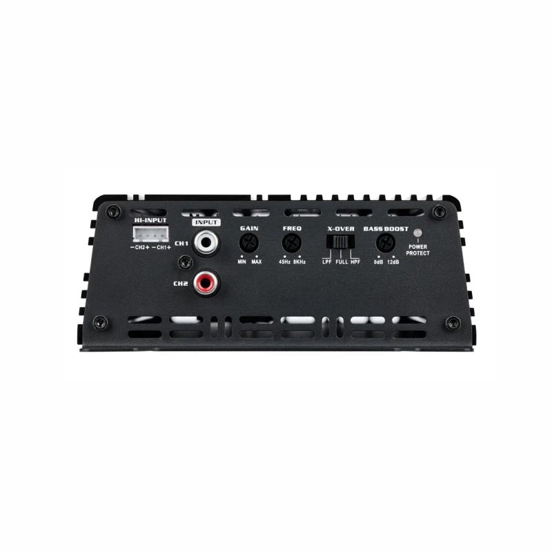 Двухканальник усиливает сигналы с частотой 10-20000 Гц, поэтому он подходит для любых динамиков – среднечастотных, широкополосных, коаксиальных, мидбасов и твитеров. Отдаваемая мощность увеличивается при снижении сопротивления в системе вплоть до 700 Вт на канал в 1 Ом, а подключение с более низким импедансом опасно для техники. Чтобы отрезать лишние частоты и настроить усилитель на работу с определенным динамиком, используйте фильтры низких и высоких частот.