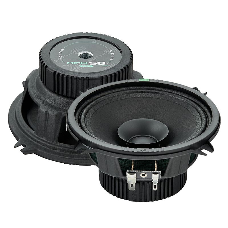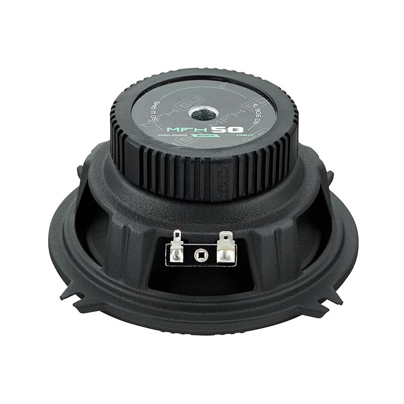Конструкция подвеса, подвижной системы и диффузора позволяет отыгрывать средние и низкие частоты, а рупор в центре динамика отвечает за верхние. Благодаря этому разные диапазоны не «смешиваются», и в музыке отчетливо слышна скрипка, фортепиано и тона флейты. Если до этого вы пользовались только штатной акустикой, MFH-50 покажут наглядную разницу в детализации и громкости звука.