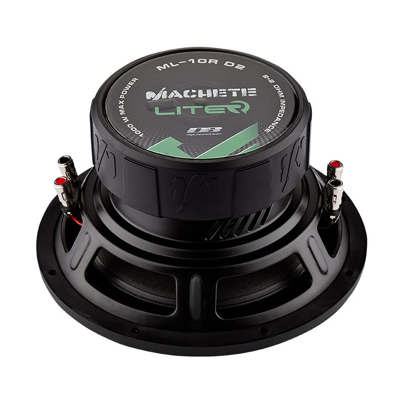 Cерия R представлена двумя моделями, и Machete Lite ML-10R – младшая из них. Ее типоразмер составляет 10 дюймов, поэтому сабвуфер займет мало места в багажном отсеке. 10-дюймовые сабы можно использовать в паре, это позволит насладиться более насыщенным и сочным басом.